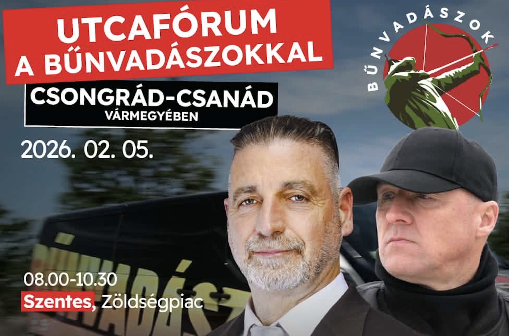 Utcafórum a Bűnvadászokkal a szentesi Zöldség piacon 2026. február 5-én 8 órától.
